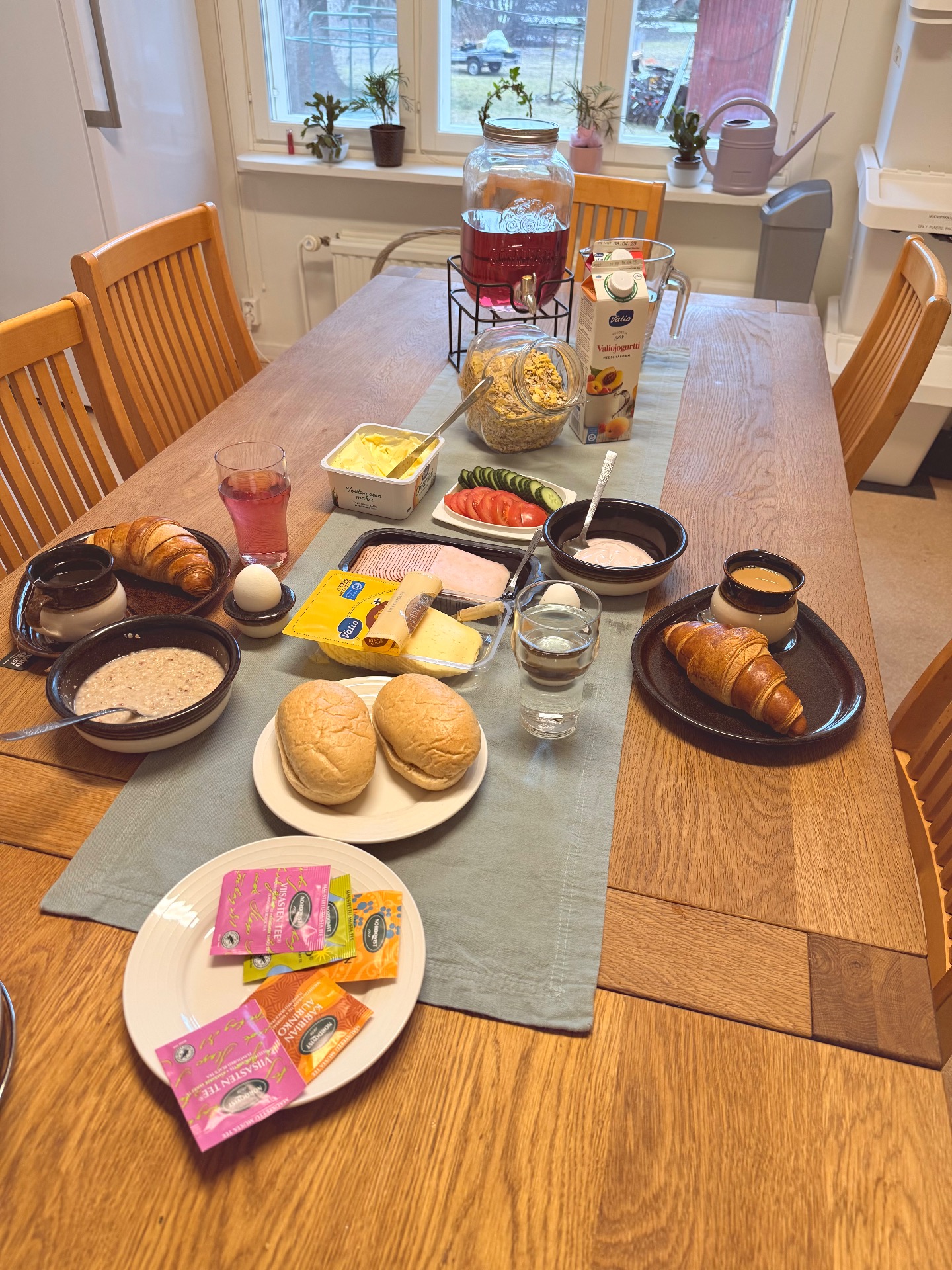 Majoittujille mahdollisuus myös aamiaiseen, sesonki aikaan katettuna (12€) , ympärivuoden omatoimisesti (10€).