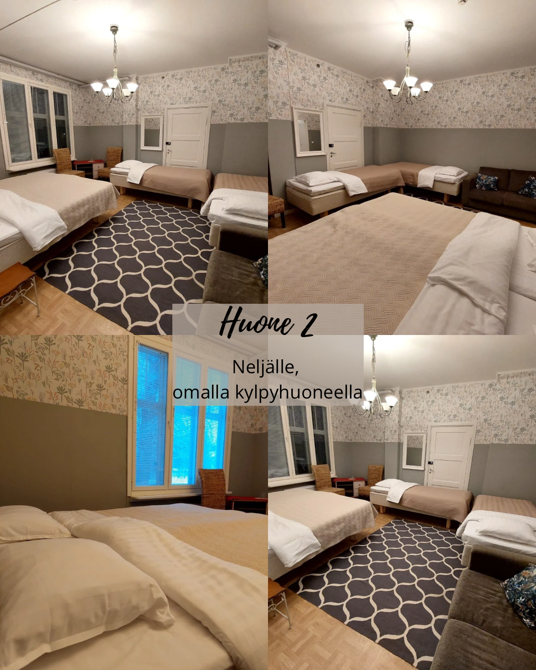 1-4 henkilön huoneet, omilla sekä jaetuilla kylpyhuoneilla.